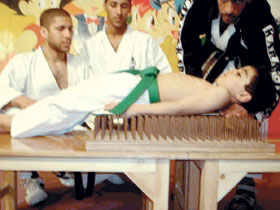 طفل يجيد الكاراتيه والنوم على المسامير