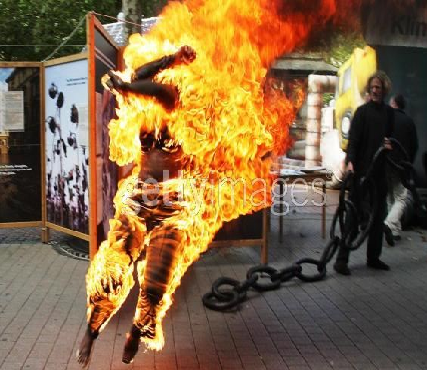 سيدة امريكية تحرق نفسها .. !!