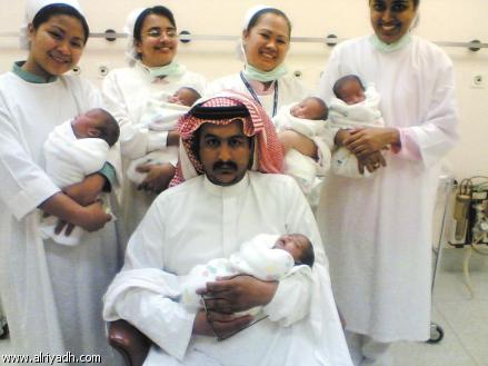 شهد أحد المستشفيات الاهلية بالرياض ولادة خمسة توائم لسيدة سعودية ..وقد تمت عملية الولادة بنجاح.. دون أي مضاعفات.. وكانت العملية والتي تعد واحدة من عمليات التوائم النادرة.. لكون كل طفل بمشيمة مستقلة.. قد تمت تحت إشراف فريق طبي متقدم. والد التوائم الخمسة.. خاطب عدد اًمن الجهات المعنية بصحة التوائم ورعايتهم.. بغية توجيهه ومساعدته.. لأفضل السبل الصحية من اجل تنشئتهم.. خاصة وان مثل هذا الرقم من التوائم (الخمسة) بحاجة لتدخل الصحة وغيرها من المؤسسات الخدمية.